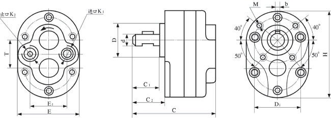 型號 | C | E | H | C1 | C2 | D | D1 | d | E1 | T | b | M | K1 | K2 |