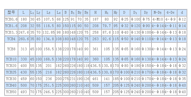 泰盛泵閥提供_全的YCB圓弧齒輪泵各型號的安裝尺寸及重量,YCB圓弧齒輪泵齒輪采用雙圓弧正弦曲線齒形制造。它與漸開線齒輪相比_突出的優點是齒輪嚙合過程中齒廓面沒有相對滑動,所以齒面無磨損,運轉平穩,無因液現象,噪音低、壽命長、效率高。YCB圓弧齒輪泵主要有齒輪、軸、泵體、泵蓋、軸承套、軸端密封等組成。齒輪采用雙圓弧正弦曲線齒形制造。它與漸開線齒輪相比_突出的優點是齒輪嚙合過程中齒廓面沒有相對滑動,所以齒面無磨損,運轉平穩,無因液現象,噪音低、壽命長、效率高。該泵擺脫了傳統設計的束縛,使得齒輪泵在設計、生產和使用上進入了一個新的領域。